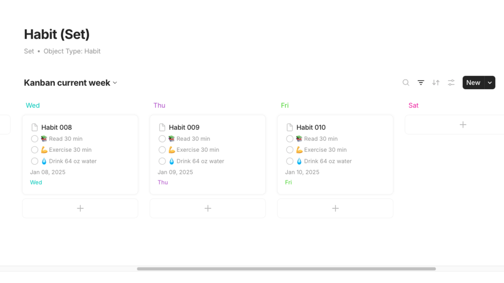 Track your habits with checkboxes in multiple views and filtered for current week and next week.